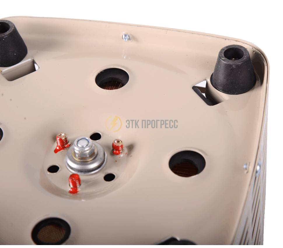 Устройство выполнено в металлическом корпусе с вентиляционными отверстиями, предотвращающими перегрев внутренних компонентов. На фронтальной панели размещается вольтметр, отображающий значение выходного напряжения, что существенно облегчает процесс настройки и мониторинга состояния сети. Основная конструкция представлена надежной магнитной катушкой с первичной и вторичной обмотками, объединенными специальным механизмом со скользящей щеткой, позволяющим регулировать количество подключаемых витков вторичной обмотки и плавно менять напряжение от 0 до 250 В.