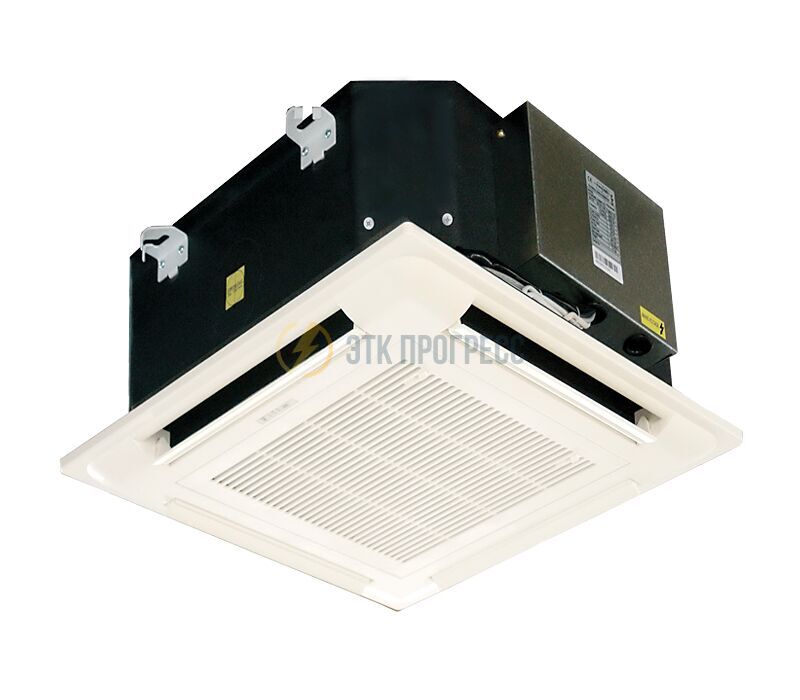 Кассетный фанкойл, дистанционный ИК пульт, декоративная панель 1050x1050 мм, выносной поддон с крепежом, перемычка на контакт JP01, паспорт.