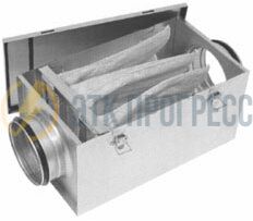 Присоединение к воздуховодам производится при помощи патрубков круглой формы с резиновой прокладкой. Фильтрующий материал представляет собой кассету с мешочными фильтрами, изготовленными из синтетического волокна. Класс очистки - G3, F5, F7.