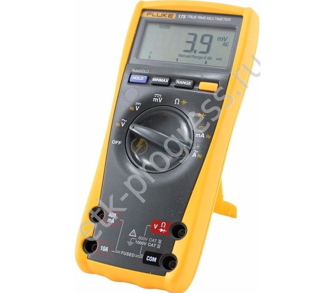Мультиметр Fluke 175 измеряет постоянные и переменные токи и напряжения, сопротивление (проводимость), используется при прозвонке электрических цепей и дополнительно - для тестирования диодов и измерения емкостей и частот. Компактный. Измерение эффективных (среднеквадратических) величин. Запись минимального, максимального, среднего и текущего значения измеряемого параметра. Улучшенная точность в своём классе. Дисплей – ЖК, цифровой, на 4 разряда с плавающей запятой, число отсчётов разрешения 6000, условная разрядность разрешения 3 ¾, дополнительная символика и вспомогательная индикация (гистограмма). Прибор внесён в Госреестр РФ.