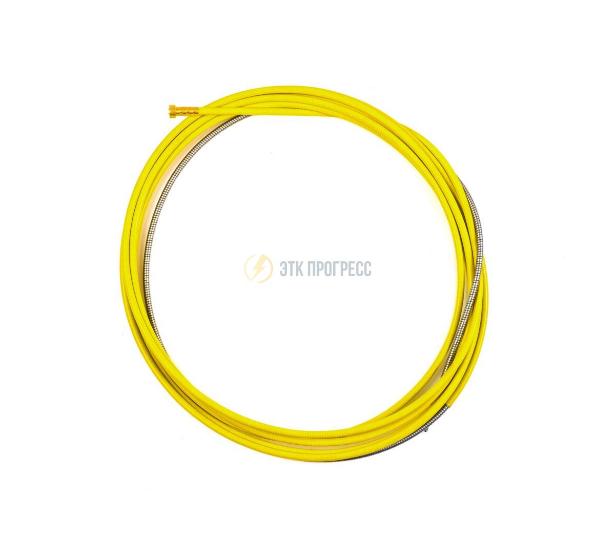 Канал направляющий (1,2–1,6) 4,4 м желтый необходим в сварке типов MIG\MAG для подачи сварочной проволоки к соплу сварного пистолета. Подача происходит непосредственно от инвертора или от выносного элемента, подающего проволоку. Фиксация концов канала осуществляется в горелке и в инверторе.