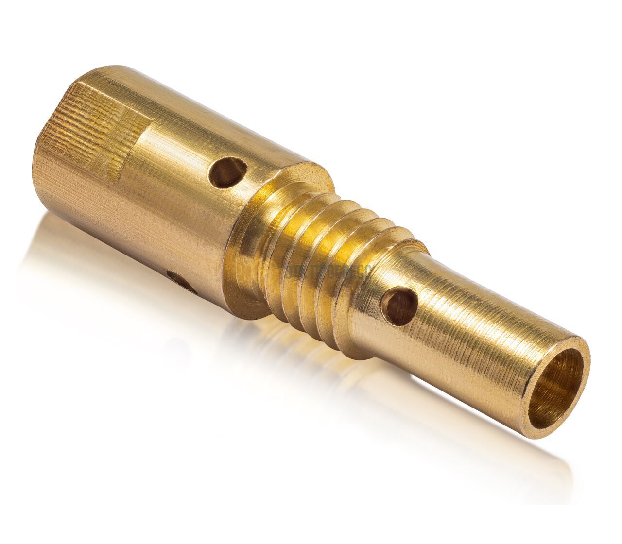 Вставка под наконечник M6/35 мм (Mig-25) - предназначена для монтажа контактного наконечника в горелку. Вставка отвечает за равномерное распределение защитного газа внутри сопла и токоподвод к наконечнику. Все вставки, как правило, выполнены из латуни, имеют симметрично расположенные отверстия по всей окружности. Вставки под наконечник отличаются в зависимости от модели горелки, имеют разные размеры и внешний вид.
