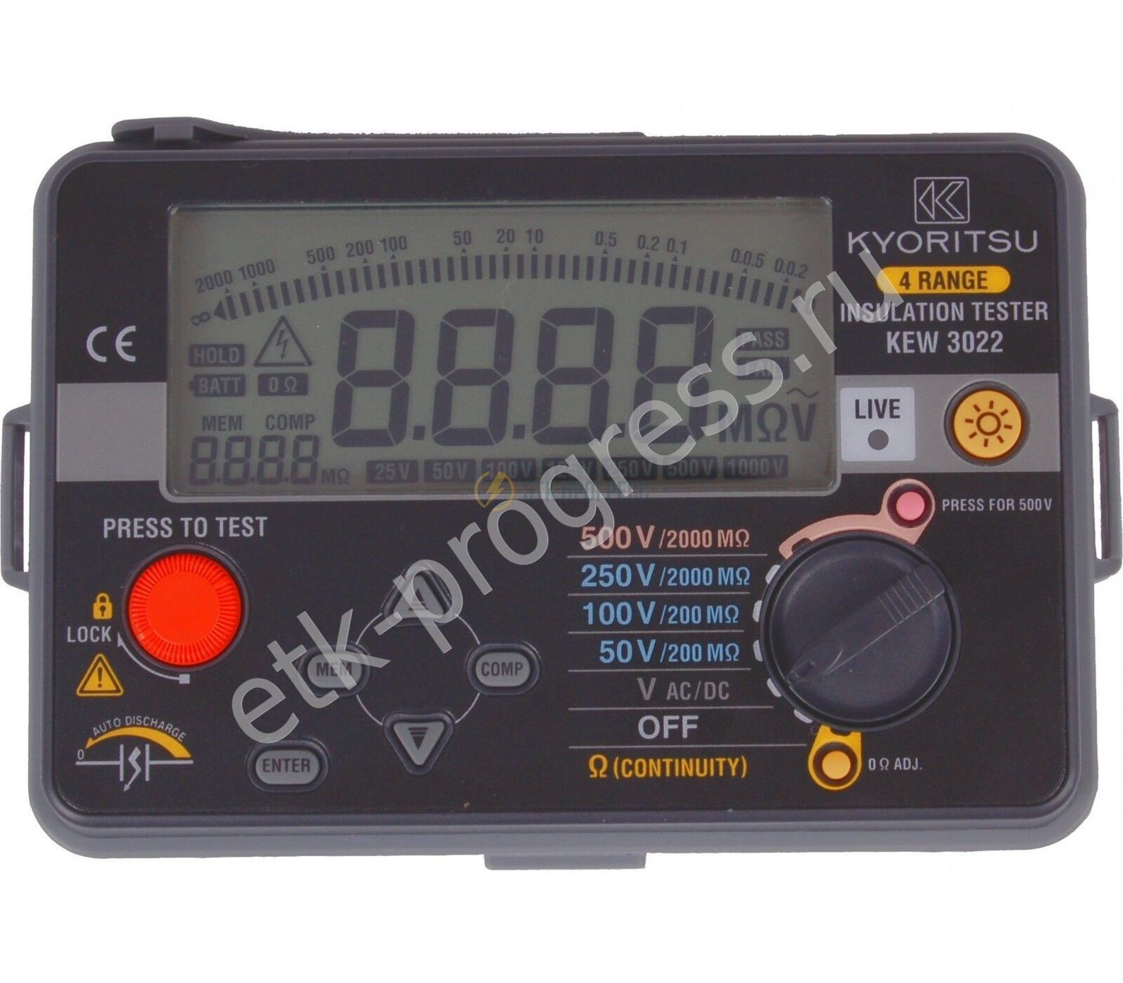 Мегаомметр (мегомметр) KEW 3022 цифровой предназначен для для проверки сопротивления изоляции и целостности цепи.