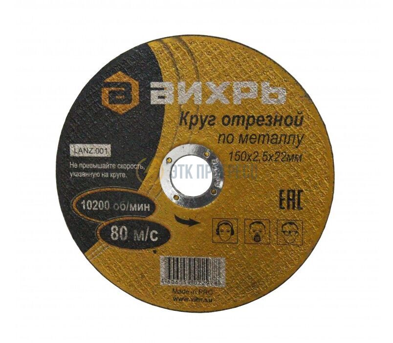 Круг отрезной по металлу ВИХРЬ 150х2,5х22 мм