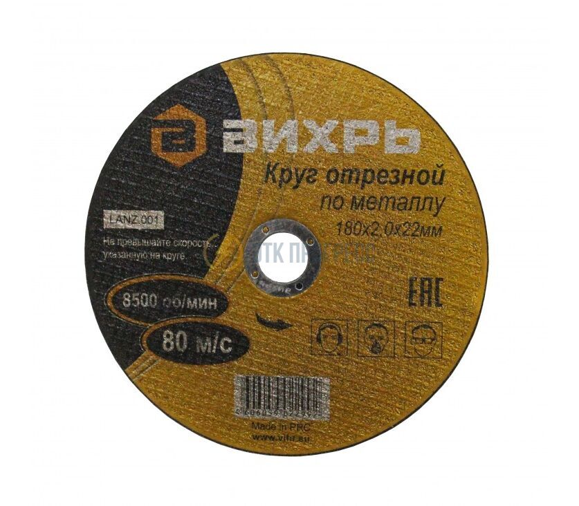 Круг отрезной по металлу ВИХРЬ 180х2,0х22 мм