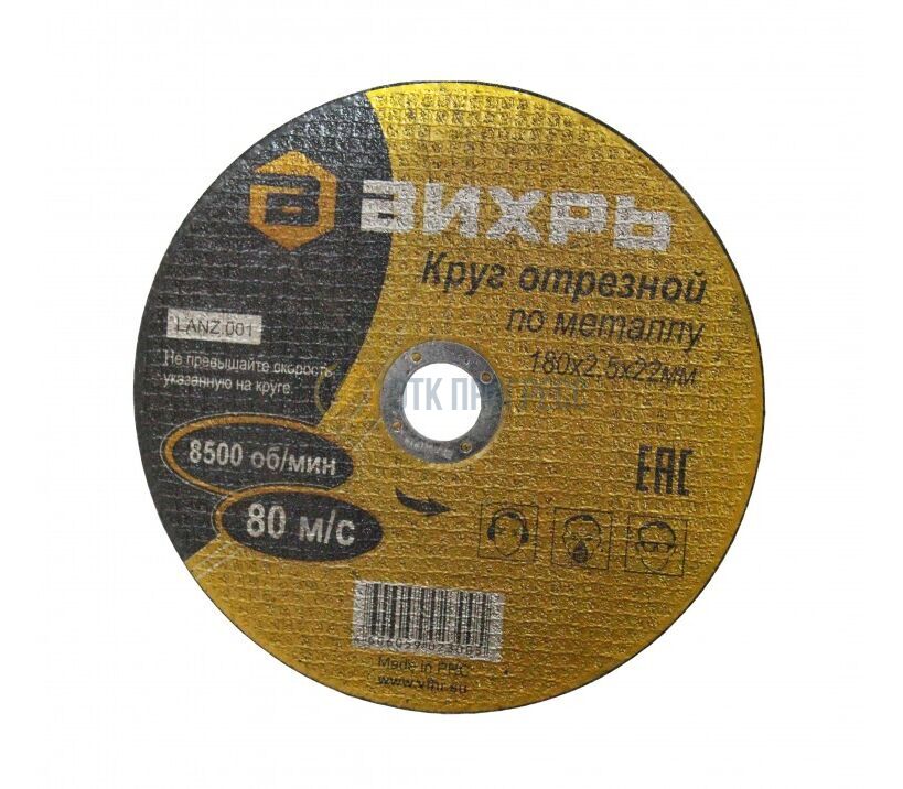 Круг отрезной по металлу ВИХРЬ 180х2,5х22 мм