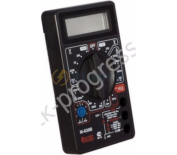 Мультиметры серии M 830 недорогие, компактные, дисплей 3 1/2 разряда (макс. 1999), индикация разряда батарей, защита, питание - 9В КРОНА.