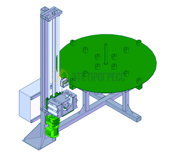 -вертикальное расположение технологического барабана для удобной установки катушки с помощью крана, погрузчика и другой грузоподъёмной техники.