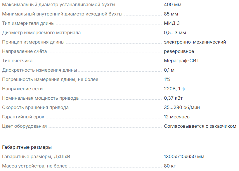 Станок для перемотки проводов малого сечения МПК 0,5-0,25П-ДН-СР позволяет производить мерную отмотку кабеля и провода диаметром до 3 мм с кабельных бухт и катушек диаметром до 400 мм и массой до 30 кг.