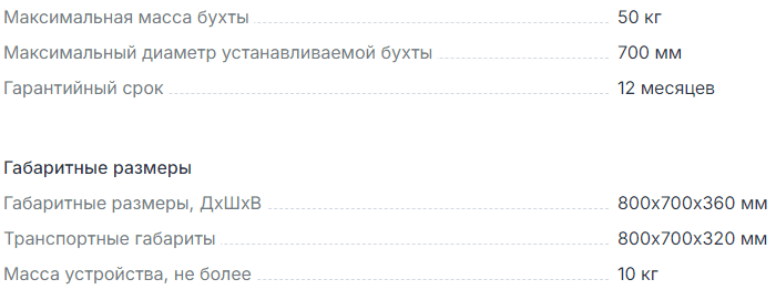 Устройство для размотки кабеля МРБ 0,7-50 производства компании Прогресс предназначено для размотки кабельных бухт диаметром до 700 мм и массой до 50 кг.