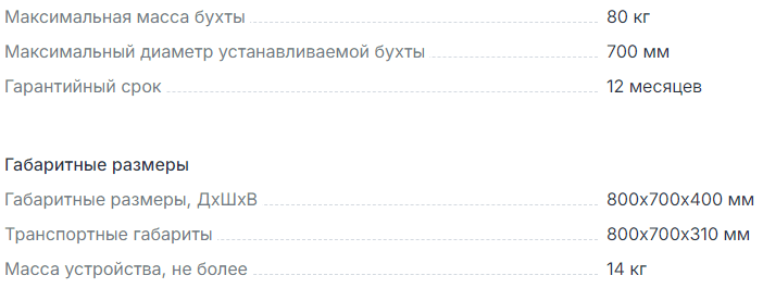 Устройство для размотки кабеля МРБ 0,7-80 производства компании Прогресс предназначено для размотки кабельных бухт диаметром до 700 мм и массой до 80 кг.