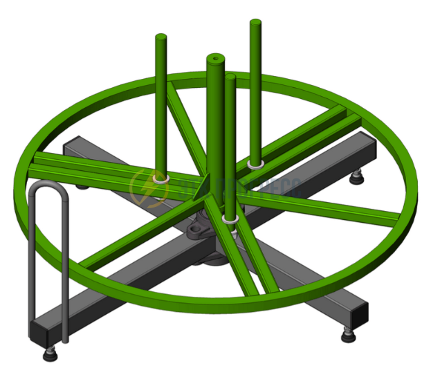 Особая конструкция технологического барабана позволяет устанавливать и разматывать кабельные катушки.