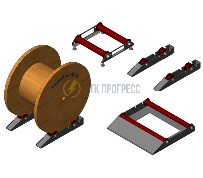 Ролики для размотки кабельных барабанов РРБ 25-5 Прогресс представляет собой пару одинаковых П-образных рам с установленными в них стальными роликами. Ролики вращаются на шариковых подшипниках закрытого типа, не требующих обслуживания.