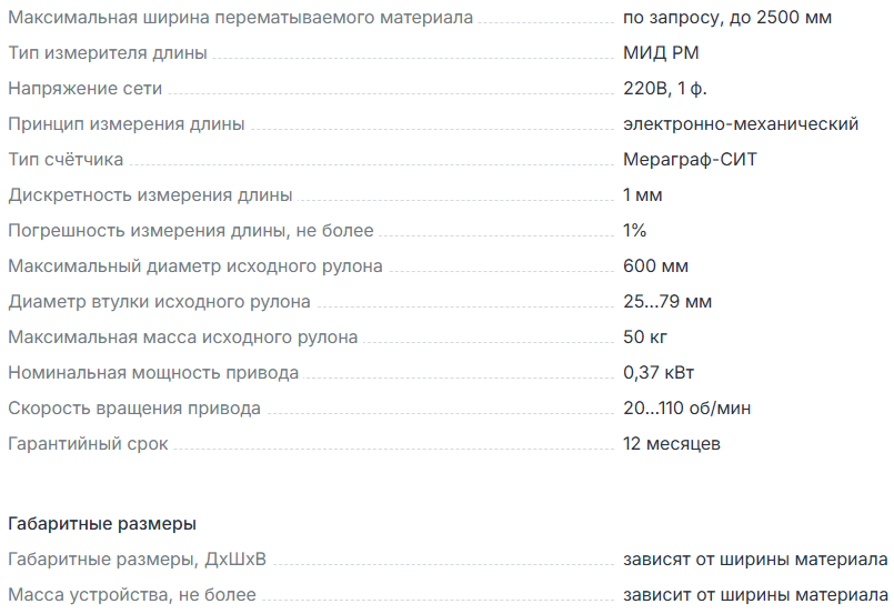 Представленная на данной странице цена актуальна для станка, рассчитанного на перемотку материала шириной до 1000 мм.