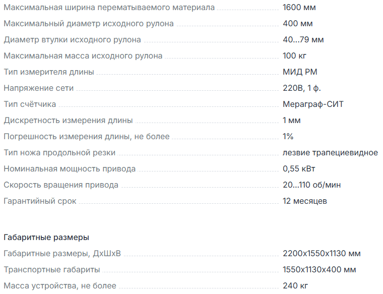 Комплект поставки перемоточного станка СПРМ-М5-П-ПР-1600х400 Прогресс:
