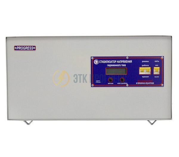 Однофазный стабилизатор напряжения PROGRESS 15000T-50 является электронным (тиристорным). Мощность стабилизаторов составляет от 5 до 80 кВА с диапазоном предельного рабочего напряжения = 100-315 В или 115-310 В в зависимости от модификации.