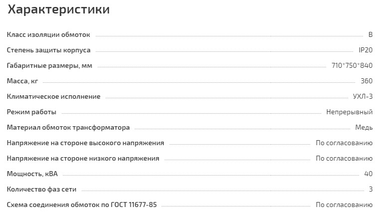 Подгруппа трёхфазных трансформаторов в серии силовых установок ТП в большей степени сориентирована на оборудование производственной зоны крупных предприятий. Для создания небольших подстанций, обеспечивающих электроэнергией участки с промышленным оборудованием, предназначен трехфазный сухой силовой трансформатор напряжения ТП3 мощностью 40 кВА.