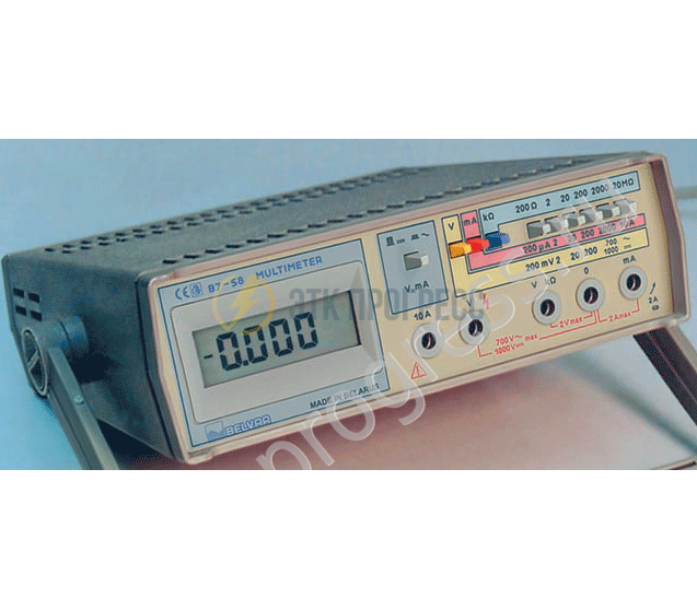 Вольтметр В7 58 сервисный цифровой прибор, удачно сочетающий малый вес, компактность и прочность конструкции с высоким качеством измерений. Характерными особенностями, отличающими вольтметр В7-58 от уже существующих вольтметров являются: способность измерения силы тока величиной до 10 А, на всех п/диапазонах измерения напряжения постоянный входной импеданс 10 МОм, надежная защита всех входов от перегрузки, 3 1/2 разрядный ЖК-дисплей и высокая базовая точность прибора по постоянному току в 0,15 % позволяют проводить измерения с высокой разрешающей способностью, а преобразователь среднеквадратичного значения, используемый в этом приборе обеспечивает точные измерения сигналов произвольной формы в диапазоне частот от 20 Гц до 100 кГц.