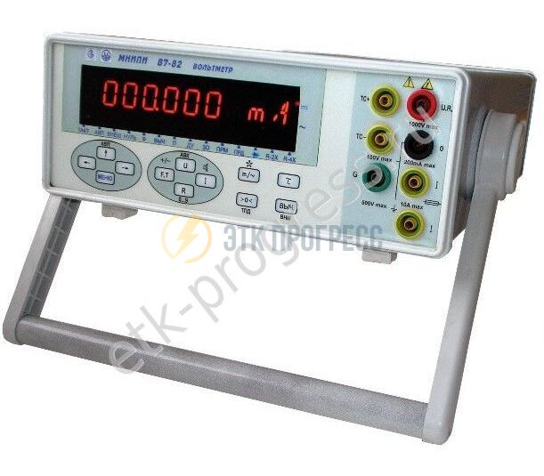 Вольтметр В7 82 используется для измерения напряжения постоянного тока и силы постоянного тока, среднего квадратичного значения напряжения переменного тока, сопротивления постоянному току, частоты и периода электрических сигналов и обеспечивающий математическую и логическую обработку результатов измерений.