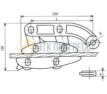 | Марка зажима | Размеры, мм. | Марка провода по ГОСТ 839-80 | Диаметр провода | Минимальная разрушающая нагрузка, кН | Масса, кг. | ||